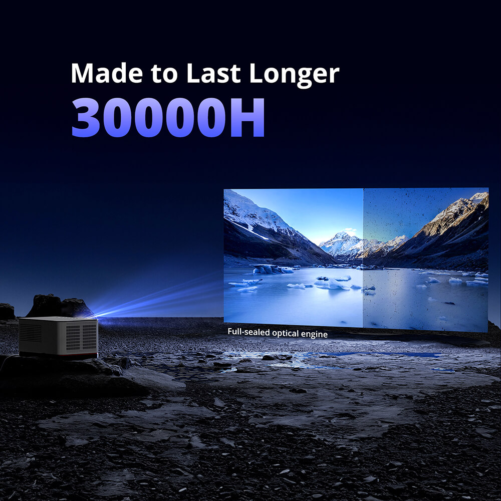 Plně uzavřený optický modul chrání kritické komponenty před prachem a nečistotami, čímž zajišťuje trvalou čistotu obrazu. Bezúdržbová konstrukce zabraňuje vzniku černých skvrn a zhoršení kvality a prodlužuje životnost zařízení na více než 30 000 hodin.