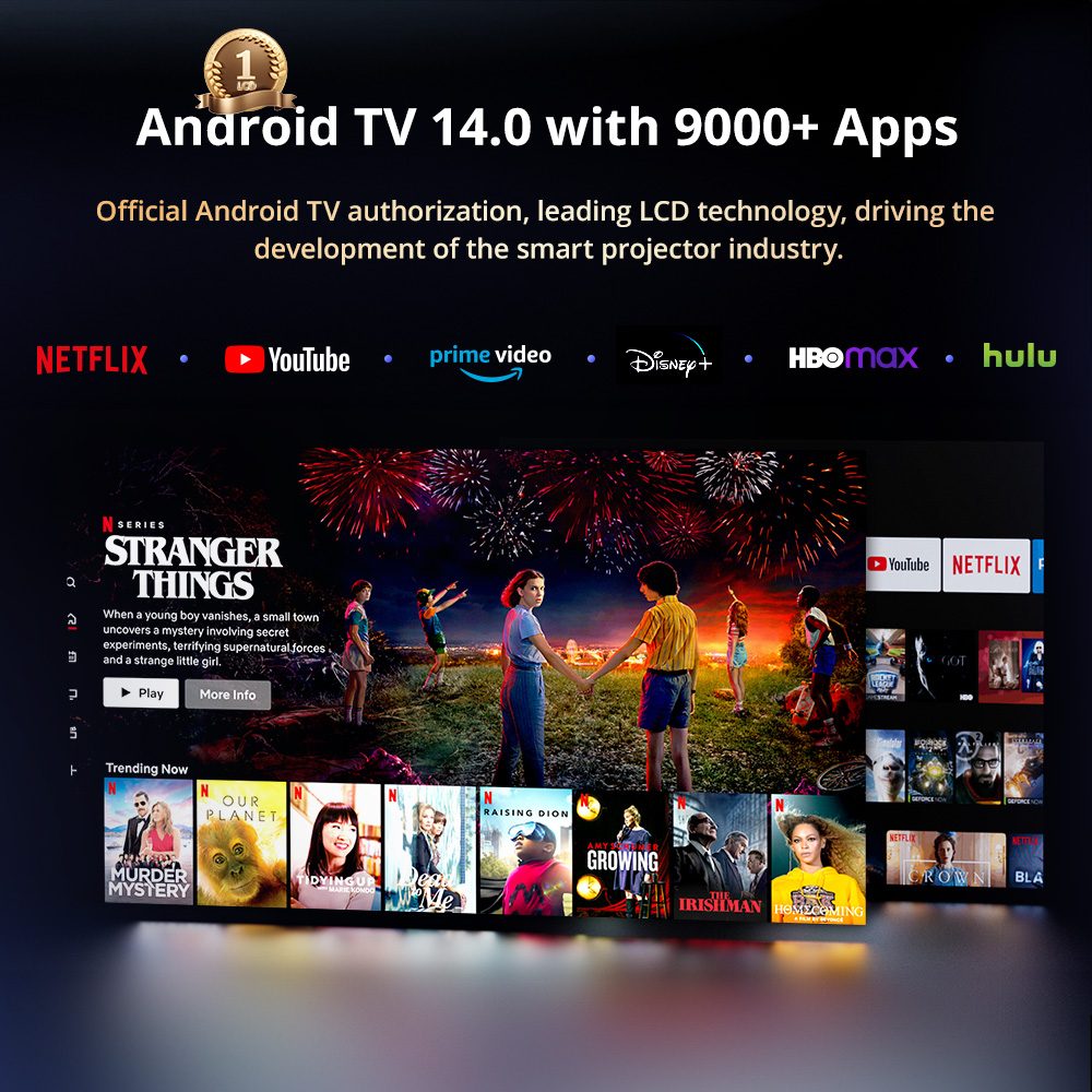 Díky nativnímu rozlišení 1080p, nově vylepšenému jasu 1800 ANSI lumenů a podpoře HDR10 poskytuje ETEO Whale Pro živé, realistické obrazy s vylepšenými detaily. Díky pokročilému procesoru Amlogic 905 s dekódováním 4K UHD zajišťuje plynulé přehrávání a bohatý, pohlcující obraz pro prémiový zážitek z domácího kina.