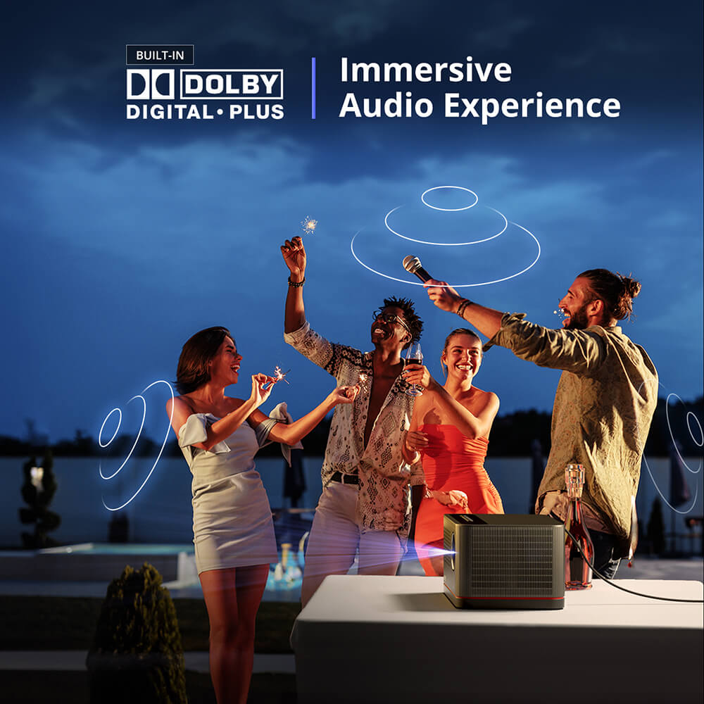 Výkonné duální reproduktory (2×10 W) poskytují bohatý zvuk, který vyplní celou místnost, a zajistí tak skutečný zážitek z domácího kina. Díky několika zvukovým profilům – včetně Standard, Film a Hudba – a přizpůsobitelným možnostem ladění si můžete výstup přizpůsobit podle svých preferencí. Certifikace Dolby Audio dále zvyšuje čistotu a hloubku zvuku.