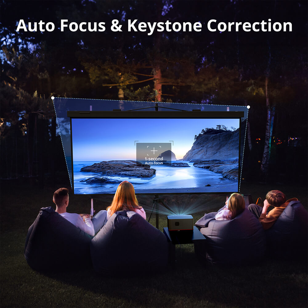 Díky výkonnému automatickému zaostřování a korekci lichoběžníkového zkreslení dosahuje přesného zarovnání obrazu během několika sekund pomocí jednoduchého dálkového ovladače. Projektor poskytuje ostrý, stabilní a dokonale pravoúhlý obraz prakticky z jakéhokoli úhlu, zatímco 50%–100% digitální zoom vám umožňuje jemně doladit velikost obrazu tak, aby vyplnil celou obrazovku.